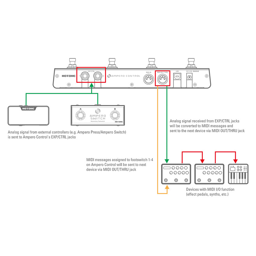Ampero Control: egy kompakt, strapabíró, teljesen programozható Bluetooth MIDI lábkapcsoló, amely rugalmas MIDI-alapú vezérlést biztosít MIDI porton, USB csatlakozón és Bluetooth-on keresztül. Négy lábkapcsolóval rendelkezik, ezek egyenként akár 16 különböző MIDI-üzenet küldésére képesek. Az Ampero Controlhoz igény szerint további lábkapcsolók vagy expression pedálok csatlakoztathatóak, valamint egy dedikált mobilapplikáció segíti a részletek beállítását.